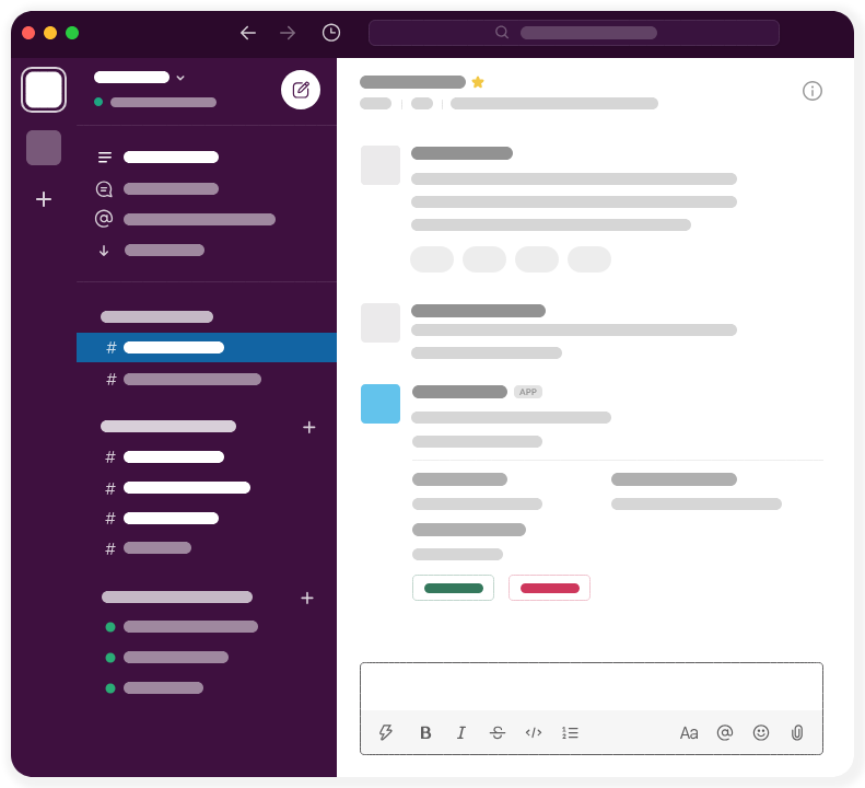 Block Kit allows you to build beautiful surfaces with reusable components. Customize the order, appearance, and direct user interactivity with stackable, versatile blocks.